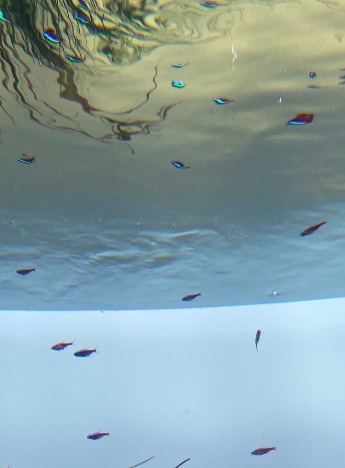 水面に反射したネオンテトラは